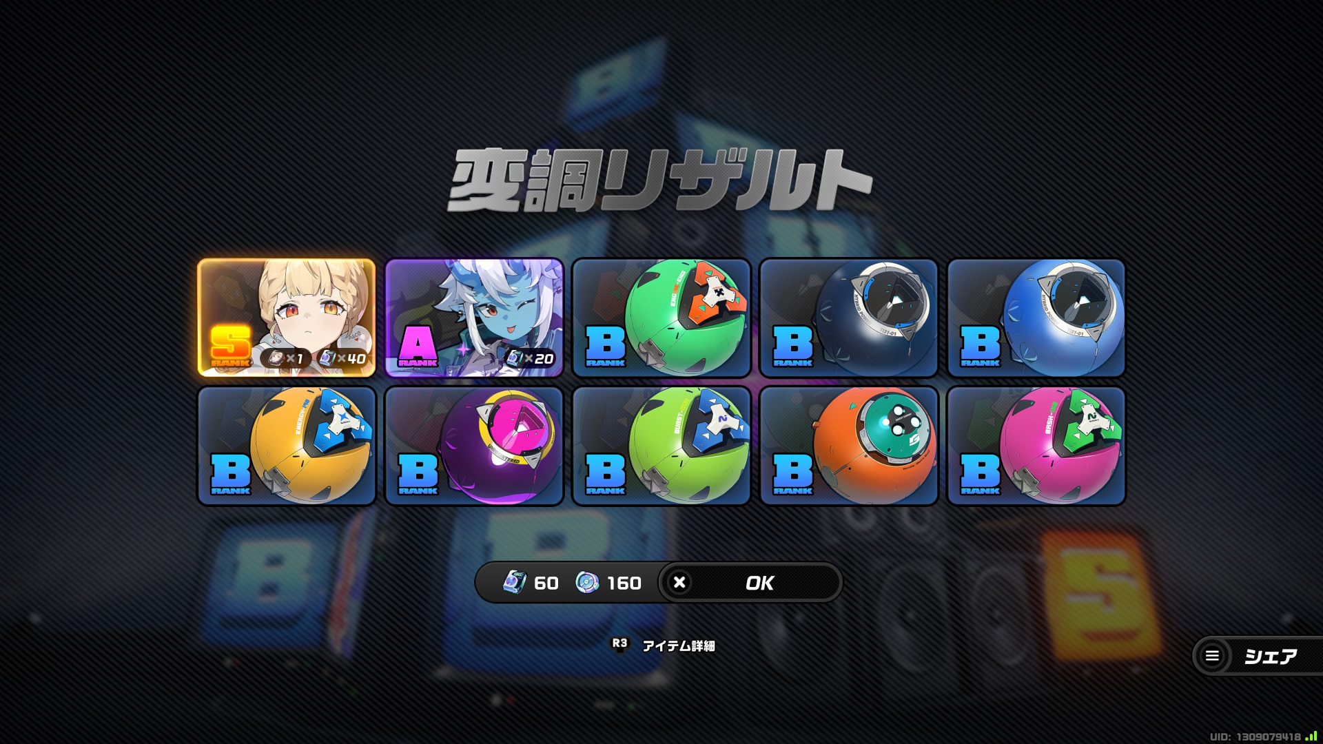 余波シグナルが160個あったから、プルクラと交換しようと思ったんだ。