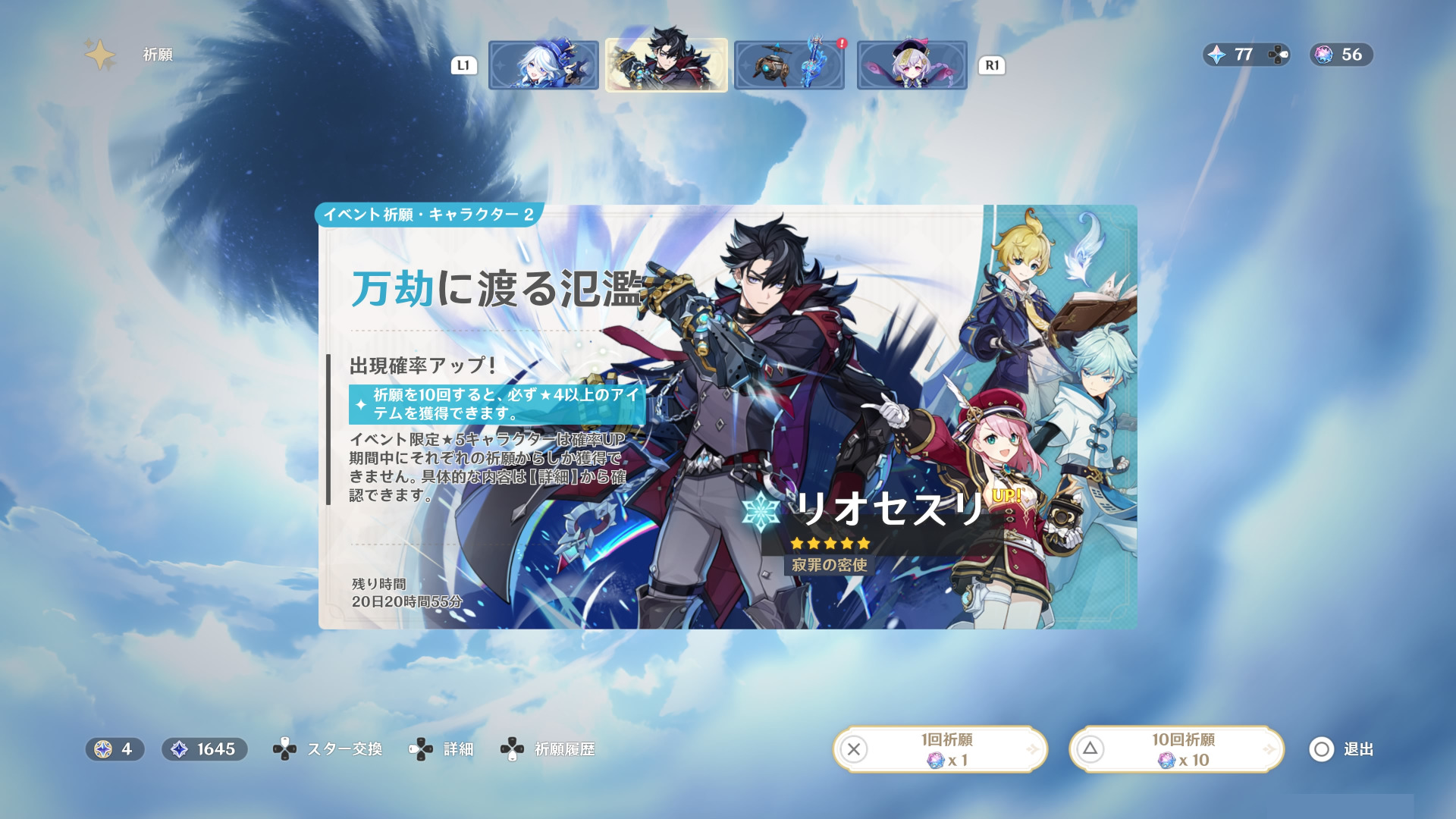 別アカでリオセスリ確定ガチャの後、