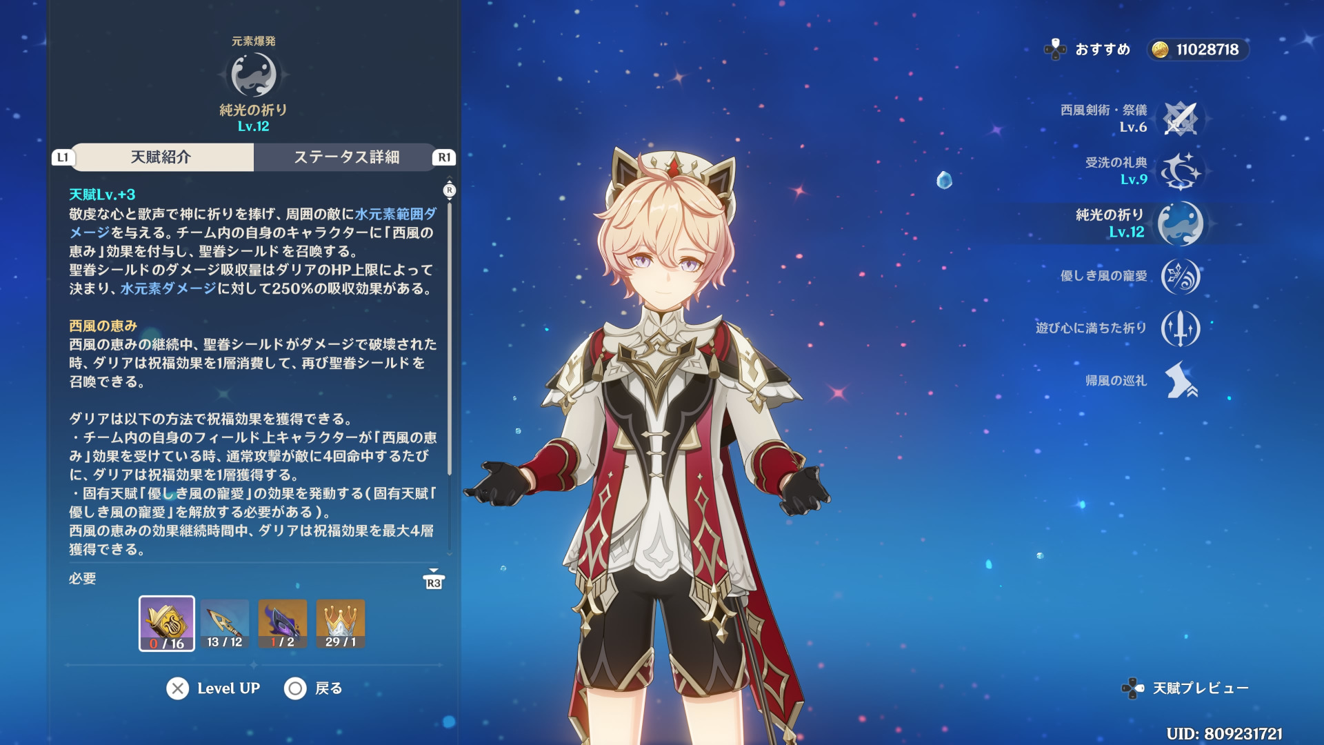 天賦本とボス素材が足りてないので他が上げられん。